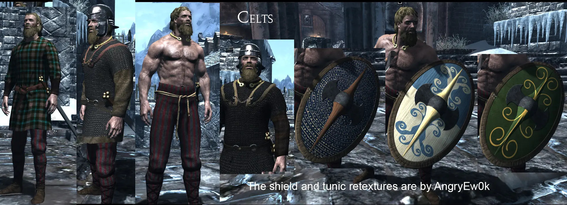 ... Mais également la même chose pour les Nordiques, désormais affublés de tenues d’un celte de très bon goût : tuniques d’époques, cottes de maille, pantalons et torques, sans oublier leurs superbes boucliers. Et pour ceux à qui ça ne suffit toujours pas, le mod ajoute même des tenues parthiques (oui oui), qui seront du plus bel effet lors de vos combats montés, avec des cataphractaires blindés, des bonnets phrygiens et les redoutables arcs de corne tant craints par les légions.