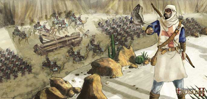 De temps en temps, dans son élan de bonté, FireFly Studios nous distille quelques artworks, histoire de faire monter notre impatience. Hier, le studio anglais a diffusé l'artworks ci-dessous présentant un croisé, archer de plus est, avec un faucon en premier plan. On peut déjà commencer à imaginer que ce faucon pourrait servir à révéler certaines zones de la carte si on lui en donne l'ordre.