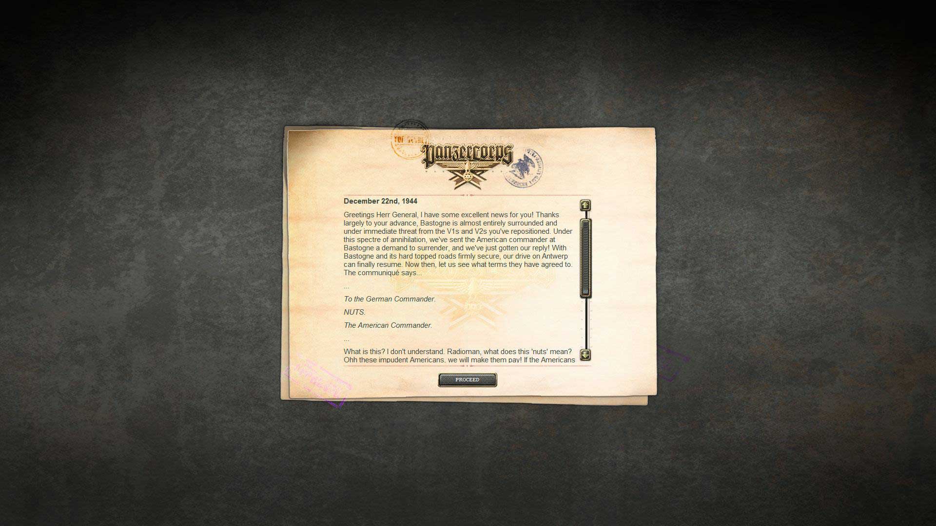 Entourée de tous les côtés par ses ennemis, la Wehrmacht allemande autrefois puissante se retrouve face à la défaite ultime à la veille de l'année 1945. Cependant, cachés dans des bunkers secrets, des scientifiques et ingénieurs allemands ont crée un arsenal d'armes étonnant afin d'inverser le cours de la guerre ! Armée de ces dernières nouvelles armes et de ce qui reste de la Wehrmacht, l'Allemagne lance l'opération Wacht am Rhein dans une dernière tentative pour mettre fin à la guerre en leur faveur. Est-ce que le destin suivra son cours avec une défaite allemand inévitable, ou pouvez-vous mener vos troupes à la victoire dans la bataille des Ardennes... et au-delà !