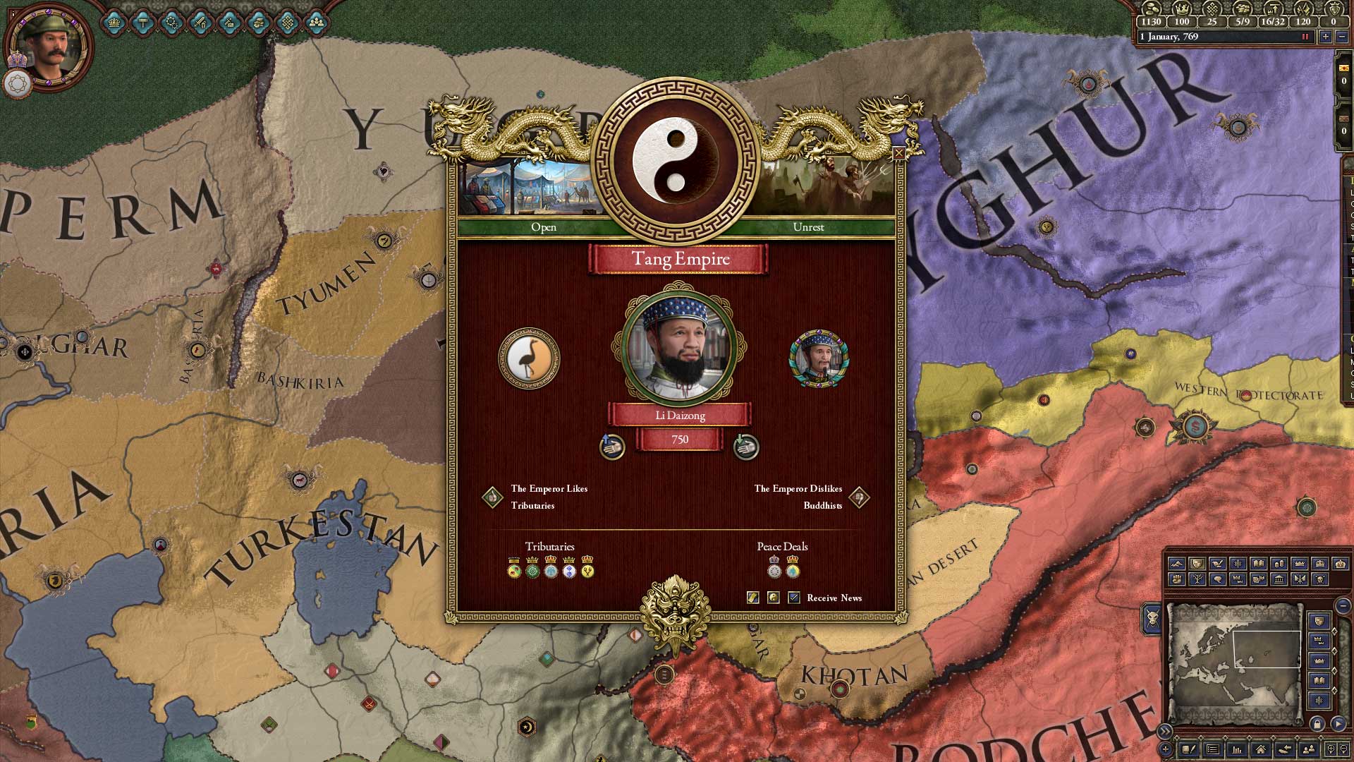 Le fait est que cette interface de dialogue avec la Chine offre des possibilités nombreuses qui peuvent faire l’objet d’une micro-gestion. L’éventail des actions possiblement envisageable est assez conséquent. Allant d’une simple demande de tributs jusqu’à des possibilités de pillages et d’invasions, il faudra fixer dorénavant une stratégie propre vis-à-vis de l’Empire du Milieu.