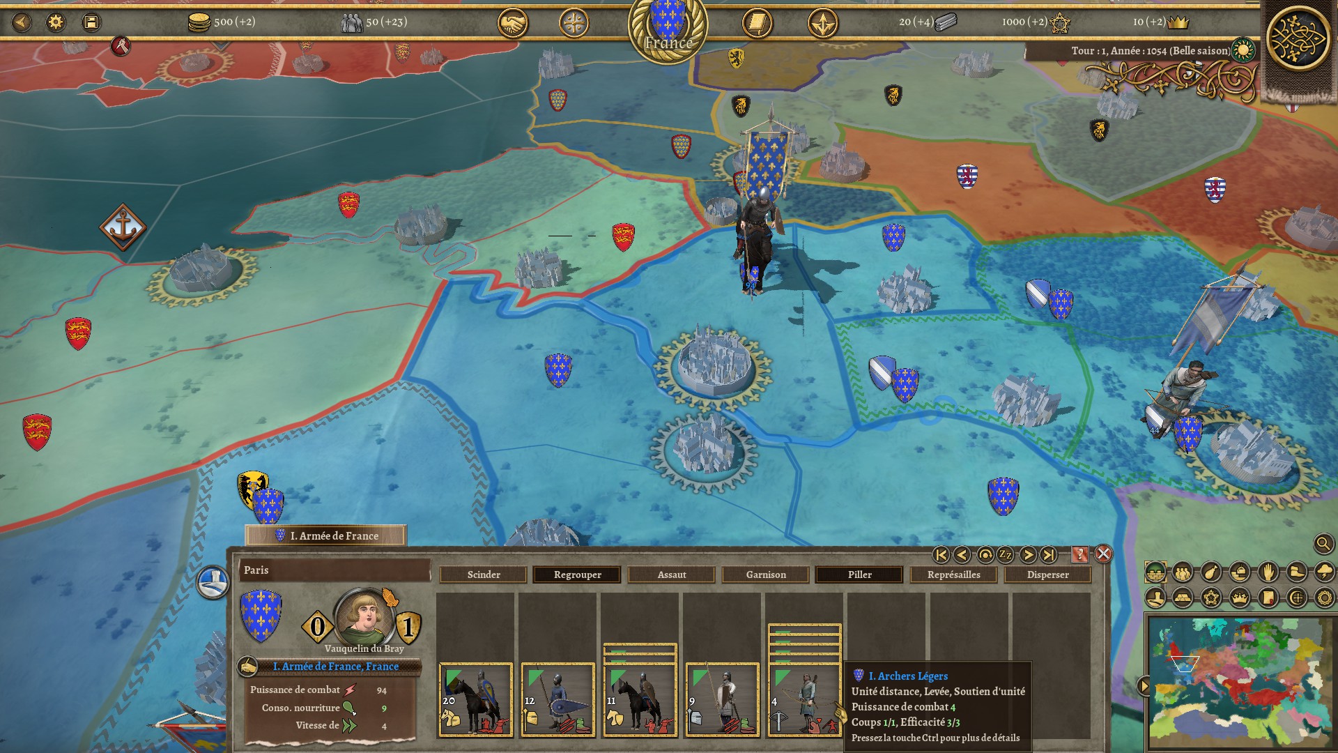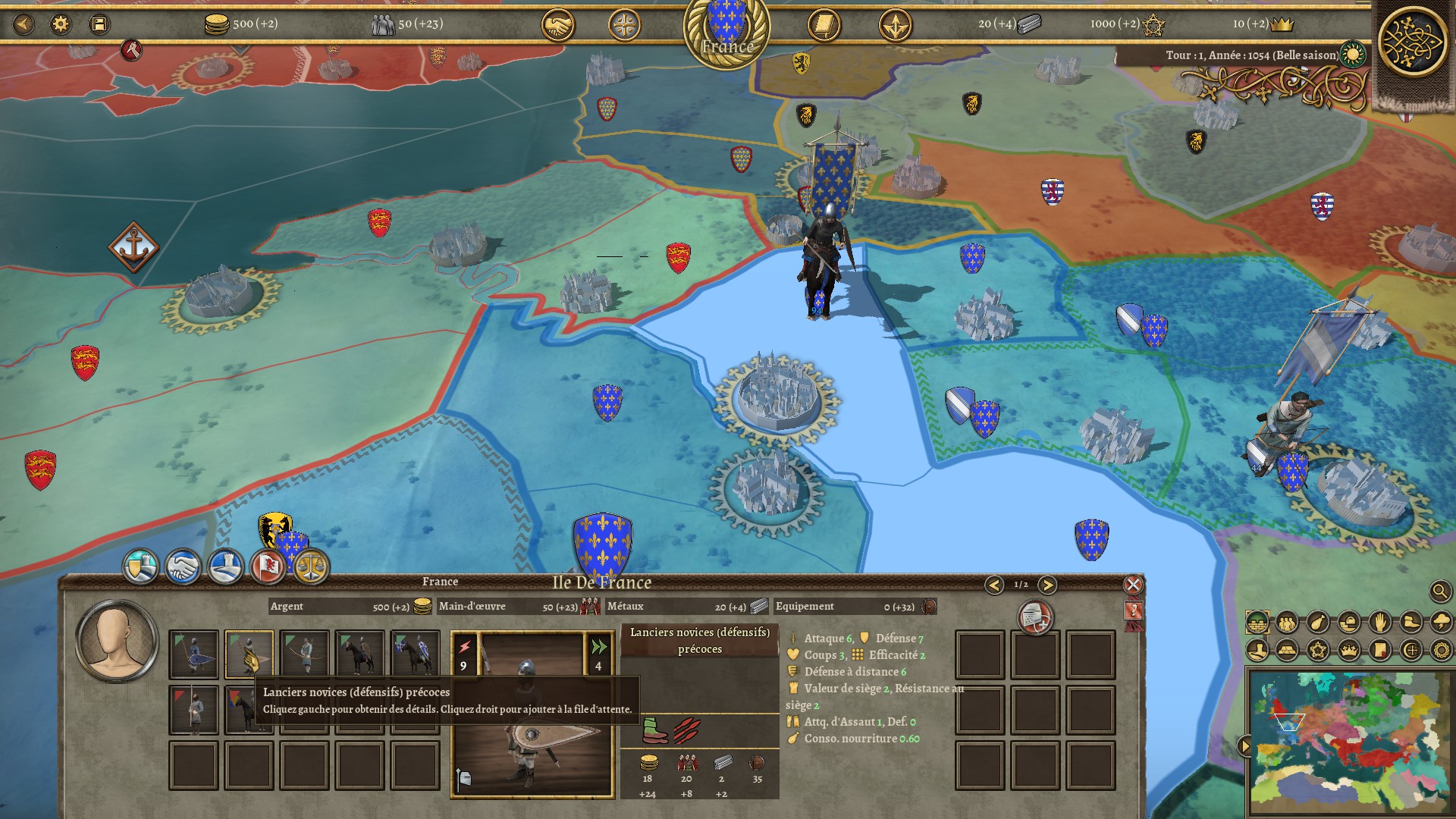 Mais qu'en est-il des mécaniques du jeu ? En successeur de Field of Glory : Empires, Kingdoms reprend le cœur de ses mécaniques. La carte est divisée en territoires, eux-même regroupés en provinces afin d'aider à votre gestion. Ces provinces ont, en plus de cela, une unité militaire locale, en général partagée par plusieurs provinces. Ainsi, plus vos terres seront vastes, plus votre choix d'unités augmentera car vous aurez accès à des unités des quatre coins de votre royaume.