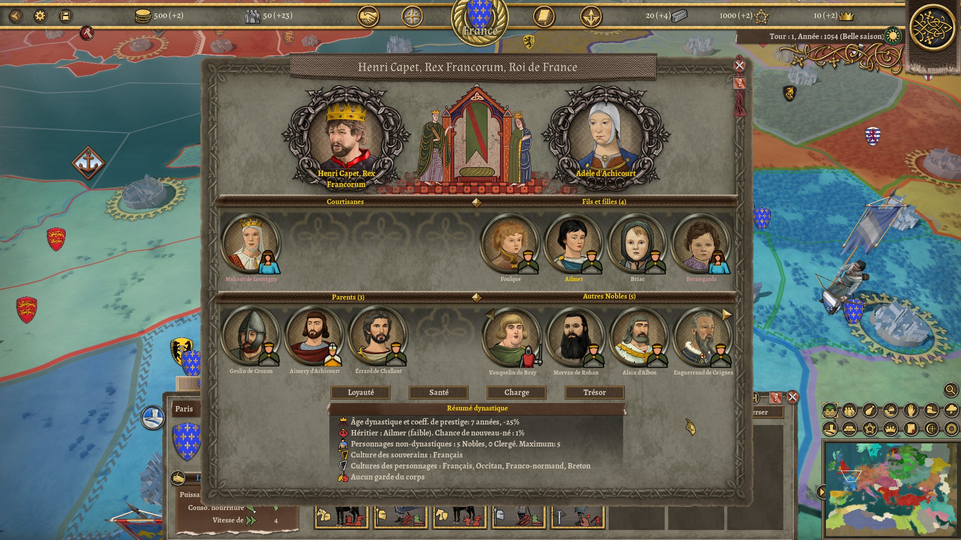 Un nouvel aspect du jeu bien approfondi par rapport à Empires, ce sont les personnages. Si auparavant votre dirigeant était tiré au hasard, ainsi que vos généraux, ce n'est plus le cas ici. À la place vous avez une Cour, avec votre souverain, sa femme, ses enfants, les autres membres de sa famille et quelques nobles. Ce sont eux qui gouverneront vos provinces en tant que Pairs du Royaume et mèneront vos armées sur le champs de bataille. Mais attention, ces personnages peuvent détourner de l'argent quand ils se retrouvent à la tête de vos provinces ou même trahir votre faction en faisant un Coup d'État.